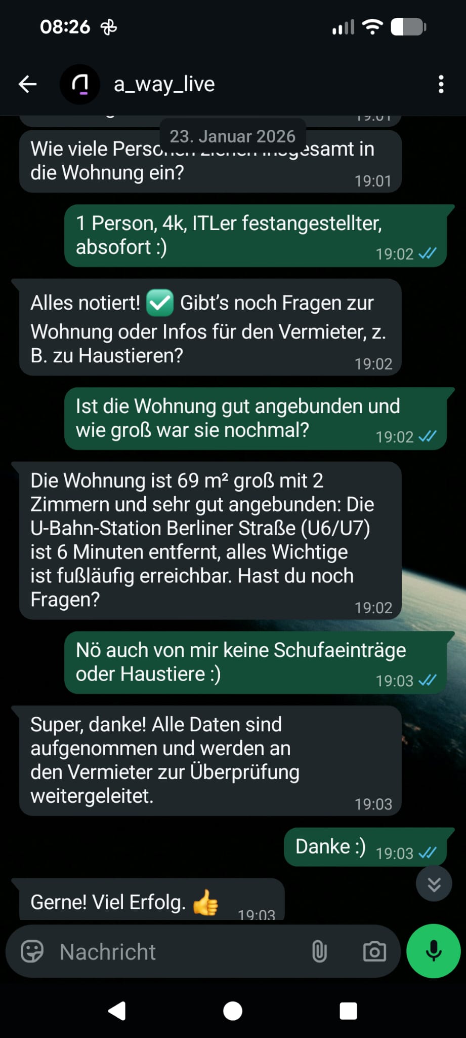 Das Frustrierende? Am Ende der Woche stand die Wohnung immer noch leer. Oder schlimmer: Die Besichtigung war voll mit unpassenden Kandidaten, während die guten Interessenten längst bei der Konkurrenz unterschrieben hatten, weil sie schneller geantwortet hat.